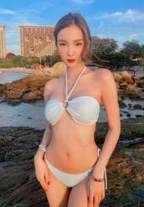 ต่อด้วยงานชุดว่ายน้ำเลยดีกว่า ชุดว่ายน้ำทูพีชสีขาว อวดหุ่นพอดีเป๊ะทุกส่วน แสงอ่อนจากทะเลยิ่งขับให้เธอสวยงามยิ่งขึ้นไปอีก อันนี้ก็ดีงาม เหมือนเป็นงานเรซควีนที่เธอเพิ่งลงไปไม่นานมานี้ เสื้อเรซควีนสีแดงรัดรูปทำให้เธอเด่นกว่าใคร แถมผิวขาวยังถูกขับให้เด่นขึ้นไปอีกจากสีแดง และ แสงของสนามแข่งรถ บอกเลยว่าชุดนี้เธอเป็นเรซควีนที่เด่นกว่าใครเลยทีเดียว สุดท้ายเป็นงานที่เธอขออวดหน้าสวยแบบเต็มตาเทียบกันก่อนแต่งหลังแต่งไปเลยว่าสวยแค่ไหน หน้าสวยจริงคนนี้เรายืนยัน ไม่เชื่อตามไปดูต่อกันเองนะ